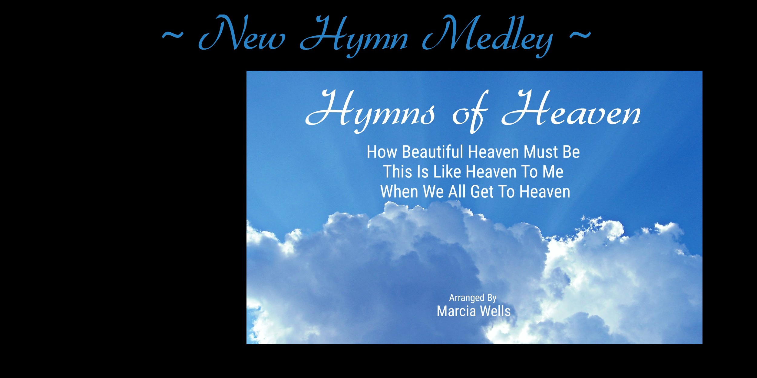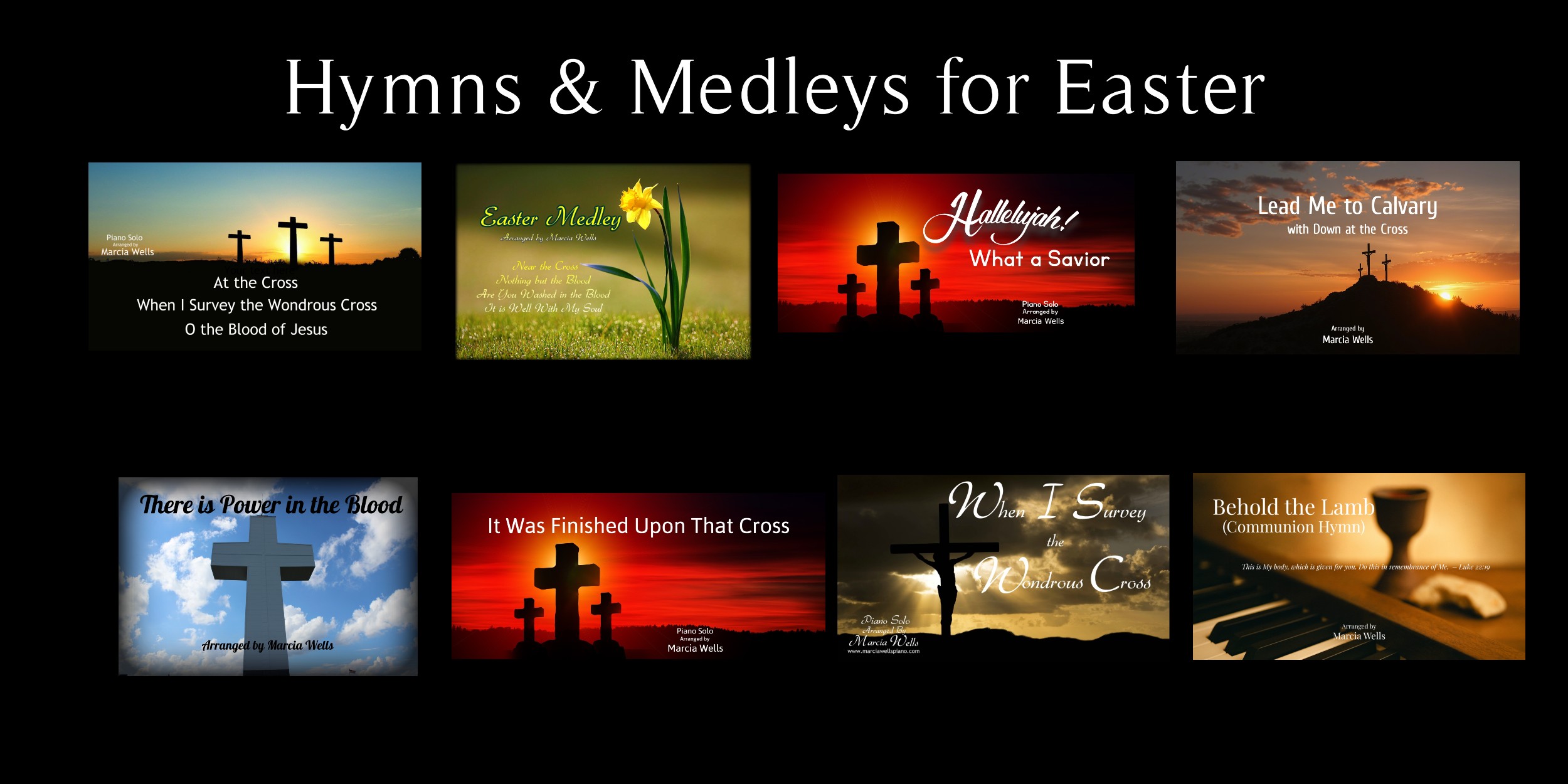 Sweet By and By* *Shall We Gather at the River* * On Jordan's Stormy Banks* *Where He Leads Me* *He Leadeth Me* *All the Way My Savior Leads Me * *Come Thou Fount of Every Blessing* *Softly and Tenderly* *I Am Thine O Lord* *It Is Well With My Soul* *At the Cross / When I Survey the Wondrous Cross / O the Blood of Jesus* *Morning Has Broken / For the Beauty of the Earth / Holy, Holy, Holy* *Sweet Hour of Prayer / Little is Much When God Is In It / In the Garden* *When I Survey the Wondrous Cross* *Christ is Mine Forevermore* *The Power of the Cross with Leave It There* *The Invitation: I Surrender All, Just As I Am, Have Thine Own Way Lord* *We Gather Together* *Fairest Lord Jesus / More Precious Than Silver* *As the Deer / Give Me Jesus* *There is a Fountain / The Old Rugged Cross* * Take the Name of Jesus With You / Only Trust Him* *I Need Thee Every Hour / Turn Your Eyes Upon Jesus / Amazing Grace* *Easter Medley* *Wonderful Peace* *Spirituals Medley* *'Tis So Sweet to Trust in Jesus* *Jesus Paid it All / Let Us Break Bread Together* *There is Power in the Blood* *Be Thou My Vision*